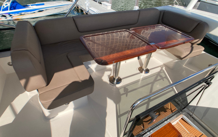 Inside there is a spacious and light-filled saloon area with a generous seating area and an equally flexible and adjustable saloon table.